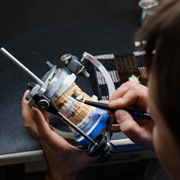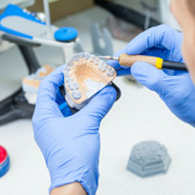 Your dentures will be crafted by an experienced lab technician at a dental laboratory to Dr. Poe’s specifications. After we send your impression to the laboratory, they’ll get to work creating your replacement teeth by placing the model of your mouth we send them in an articulator, which is a device designed to represent the jaw. While your model is in the articulator, the lab technician will attach the teeth with wax.